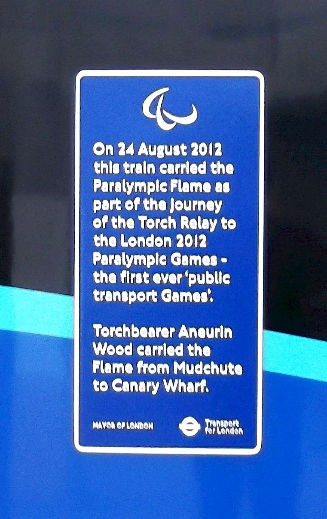 The 'plaque' is on the side of a Docklands Light Railway train, so could be anywhere on the system.