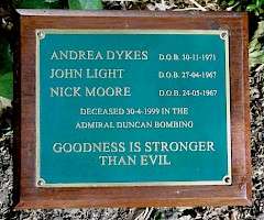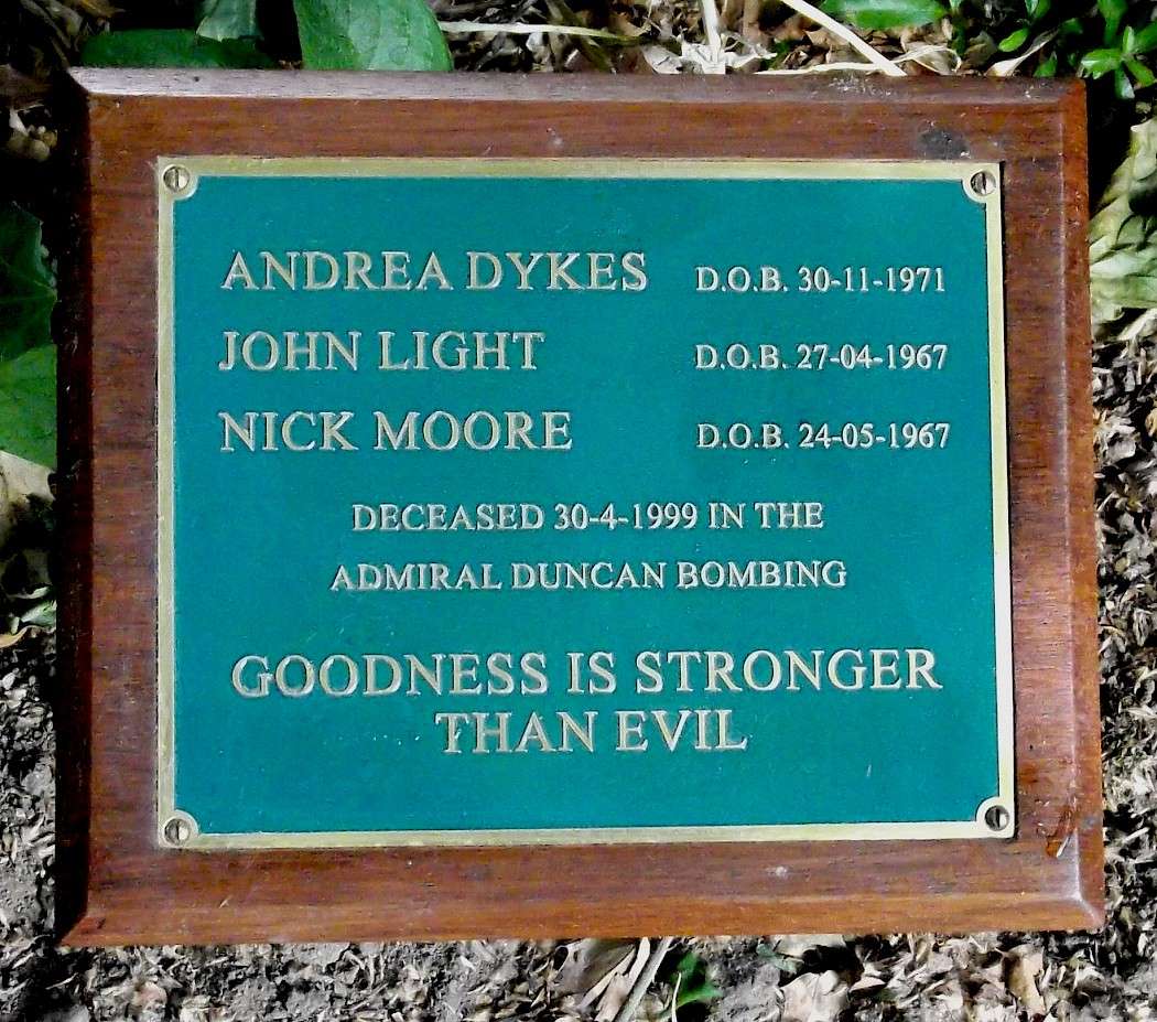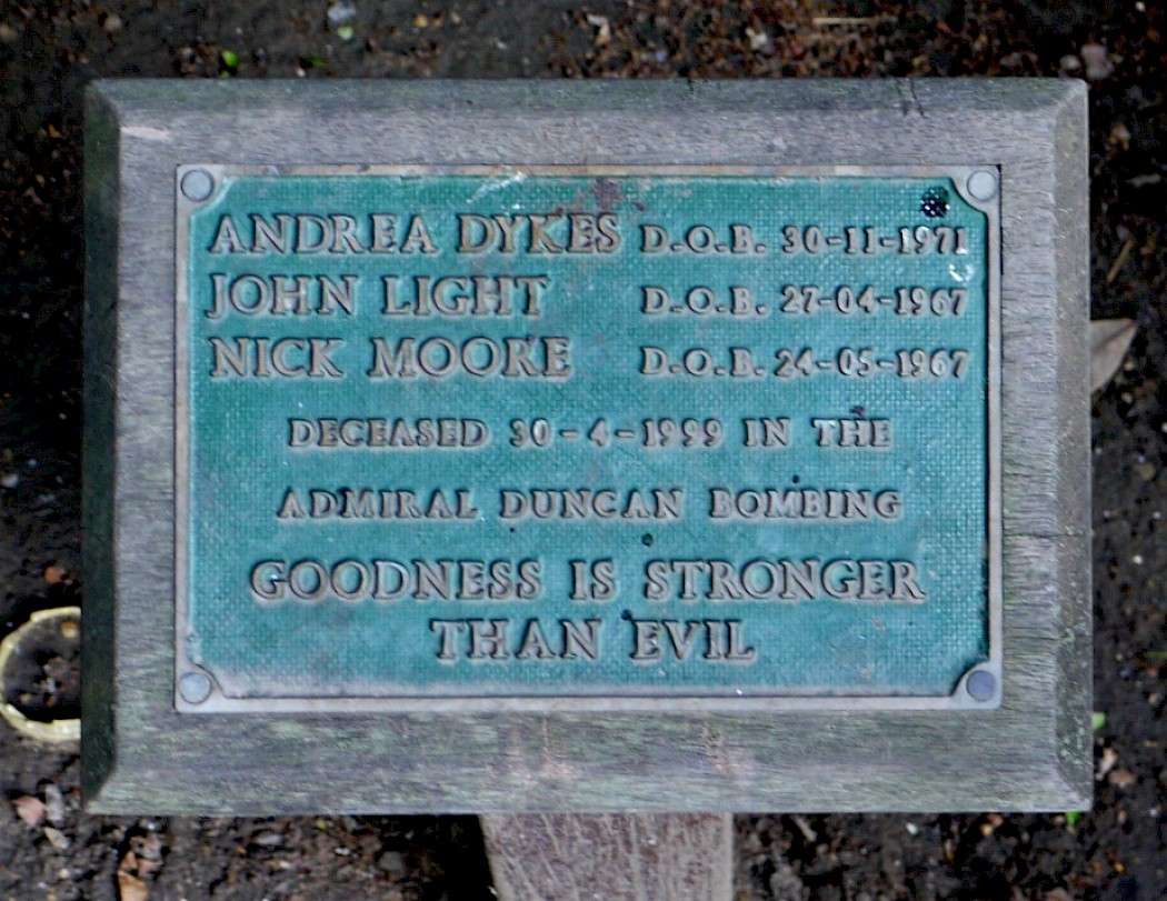 Three people killed when a fanatic nail-bombed the gay pub in Old Compton Street, on 30th April 1999.