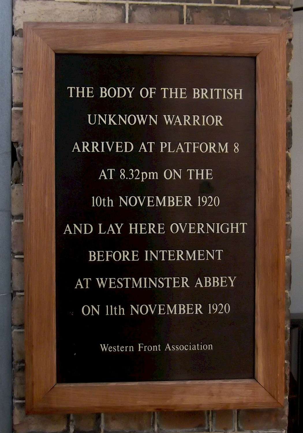 The plaque is located between platforms 8 and 9.of Vvictoria Station.